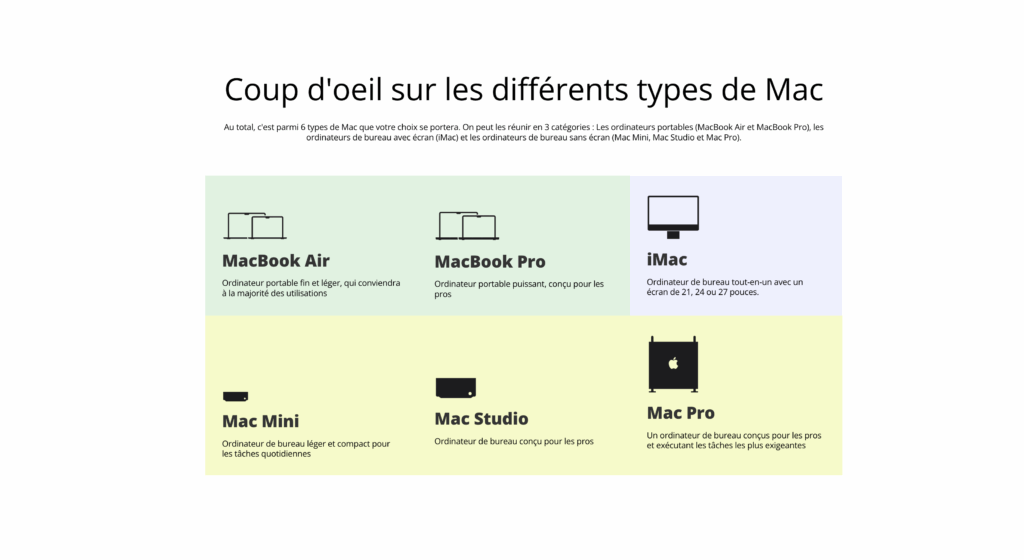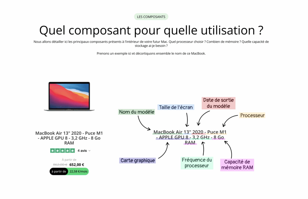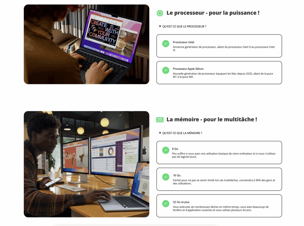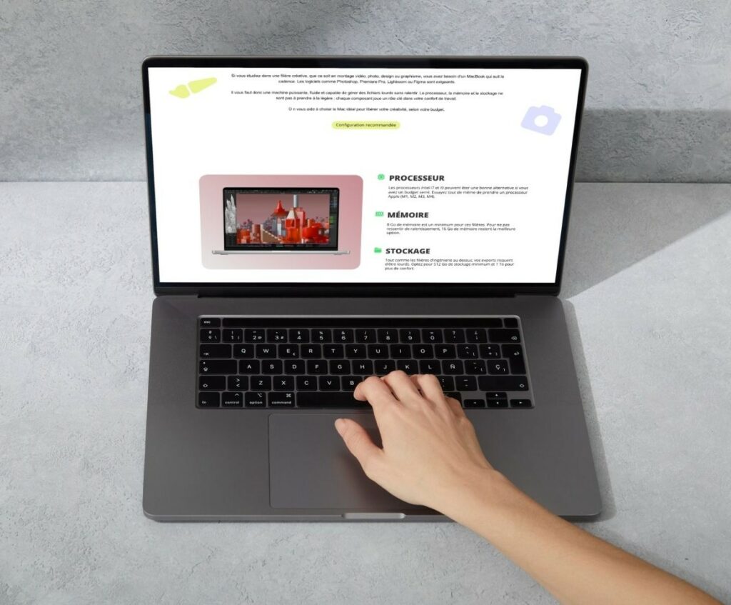 L’objectif était de créer un guide d’achat pour les clients hésitant entre plusieurs modèles ou n’y connaissant rien en ordinateur Apple.
